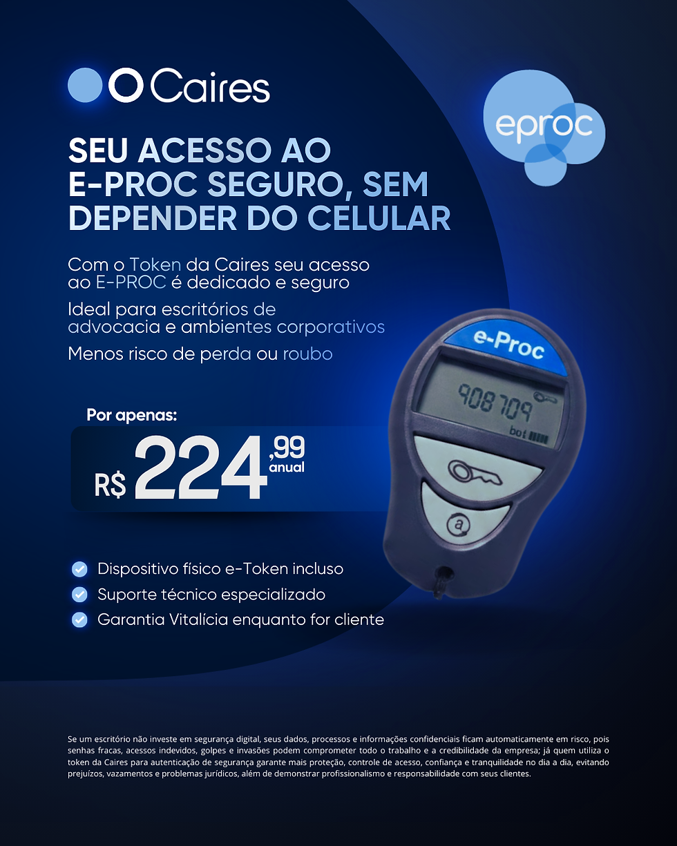 Com foco em segurança, produtividade e modernização dos escritórios jurídicos, a Caires lançou um novo sistema de autenticação por e-Token para acesso ao e-Proc, eliminando a dependência exclusiva do celular no ambiente de trabalho.